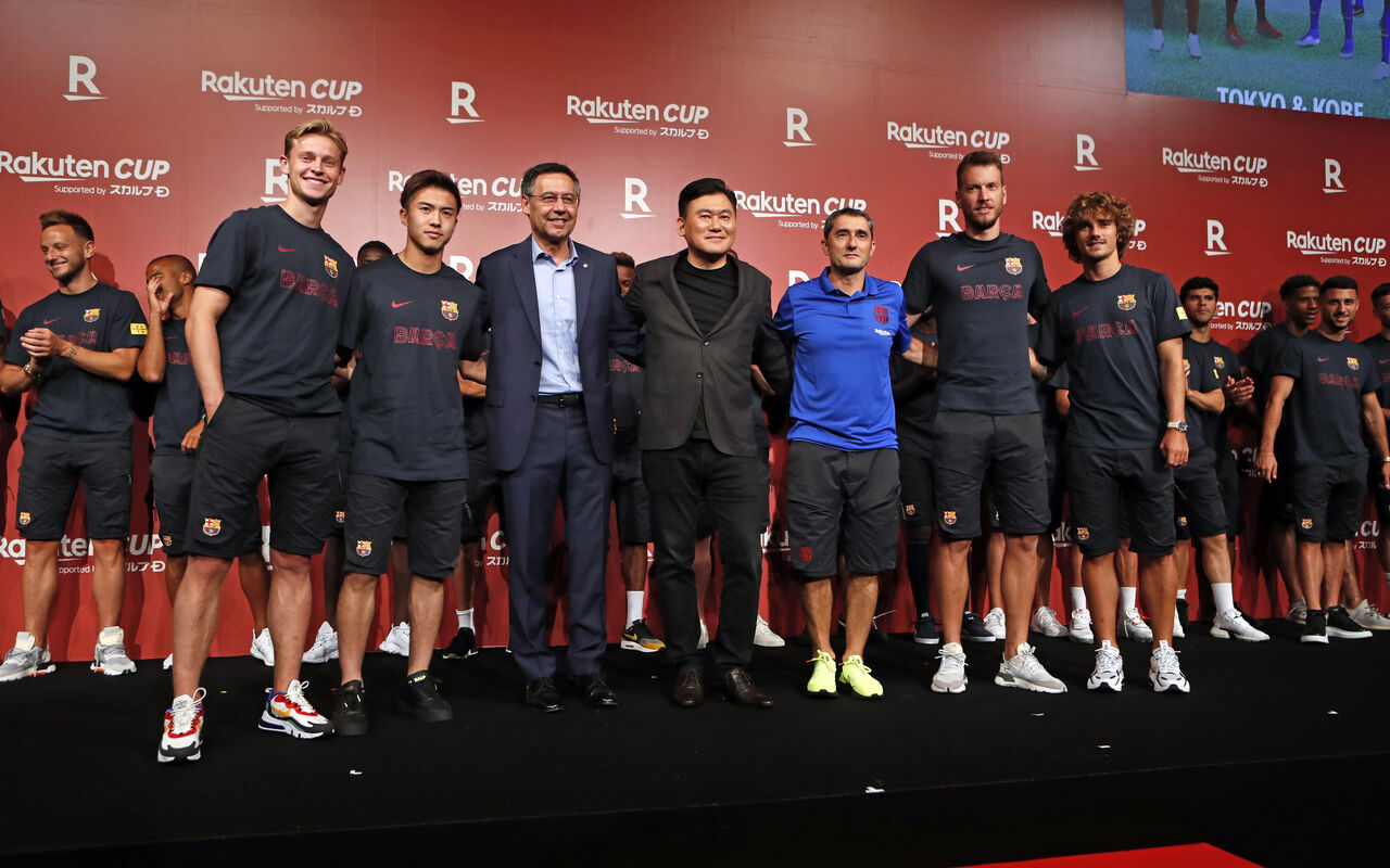 「ヴィッセル神戸の親会社であり、バルセロナのスポンサーを長年務めた旧知の楽天グループが摂理的に登場して、バルセロナが要求していた金額が全額支払われる運びとなった。茶番劇に巻き込まれていたチームは遅くとも金曜日(25日)の夜までに日本へ到着し、日曜日(27日)の神戸との親善試合に向けた準備に入る」
